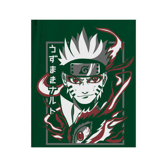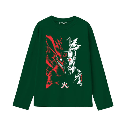 Boys Full Sleeve Naruto Kurama Mode Graphic T-Shirt – Dark Green Anime Edition (Ages 9 to 16 Years)